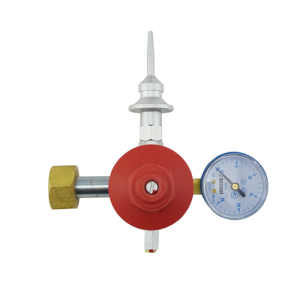 Данный редуктор имеет нажимной клапан, который позволяет уменьшить расход газа на 20-30%, чем при использовании обычной насадки на баллон, а также экономить время наполнения шаров. Нажимной клапан удобно располагается относительно крепления редуктора к баллону. Съемная насадка нажимного клапана позволяет наполнять шары различных типов без риска их механического повреждения. Применение специальных материалов при изготовлении крышки редуктора и конструктивные особенности корпуса полностью исключают неконтролируемое истечение газа в авариных ситуациях, а также гарантируют стабильные показатели при высоких нагрузках, экстремальных погодных условиях и длительном пользовании.