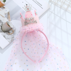 Ободок корона, Happy Birthday, Розовый, 1 шт.