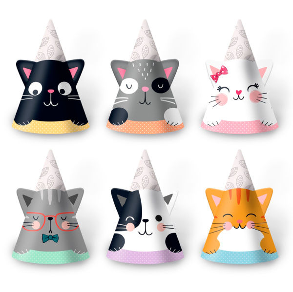 Колпаки, Котики с ушками, 16 см, 6 шт.